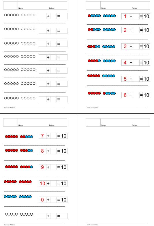 Ergänzungsaufgaben bis 10 mit farbigen Kreisen und ein Blanco