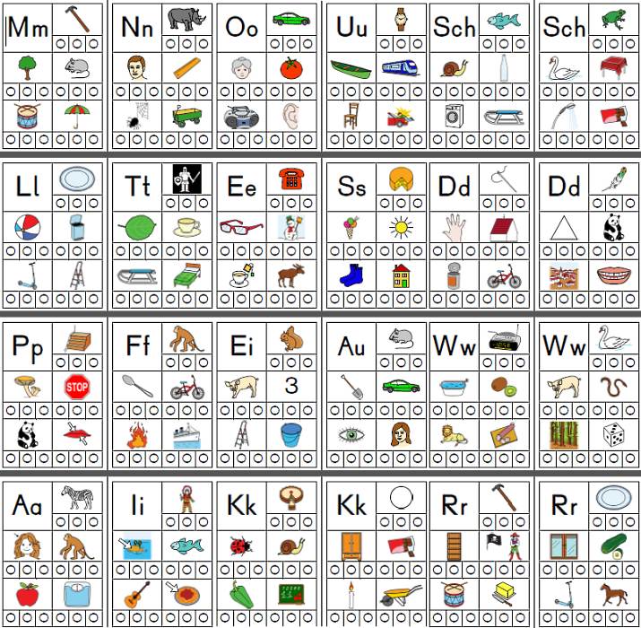Mm, Nn, Ll, Tt, Pp, Ff, Aa, Ii, Oo, Uu, Ee, Ss, Ei, Au, Kk, Sch, Dd, Ww, Rr