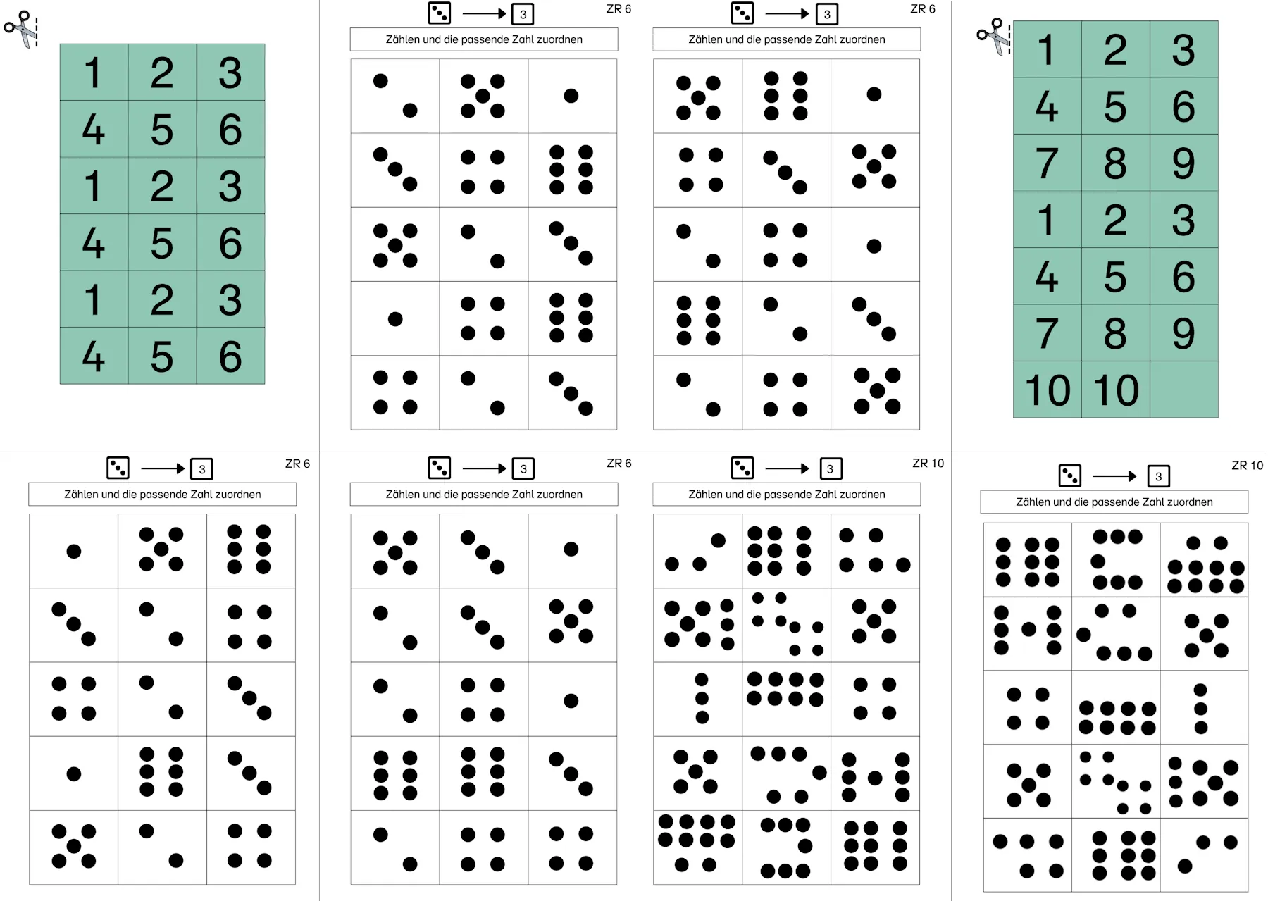 Punktbilder zählen und Zahlen zuordnen