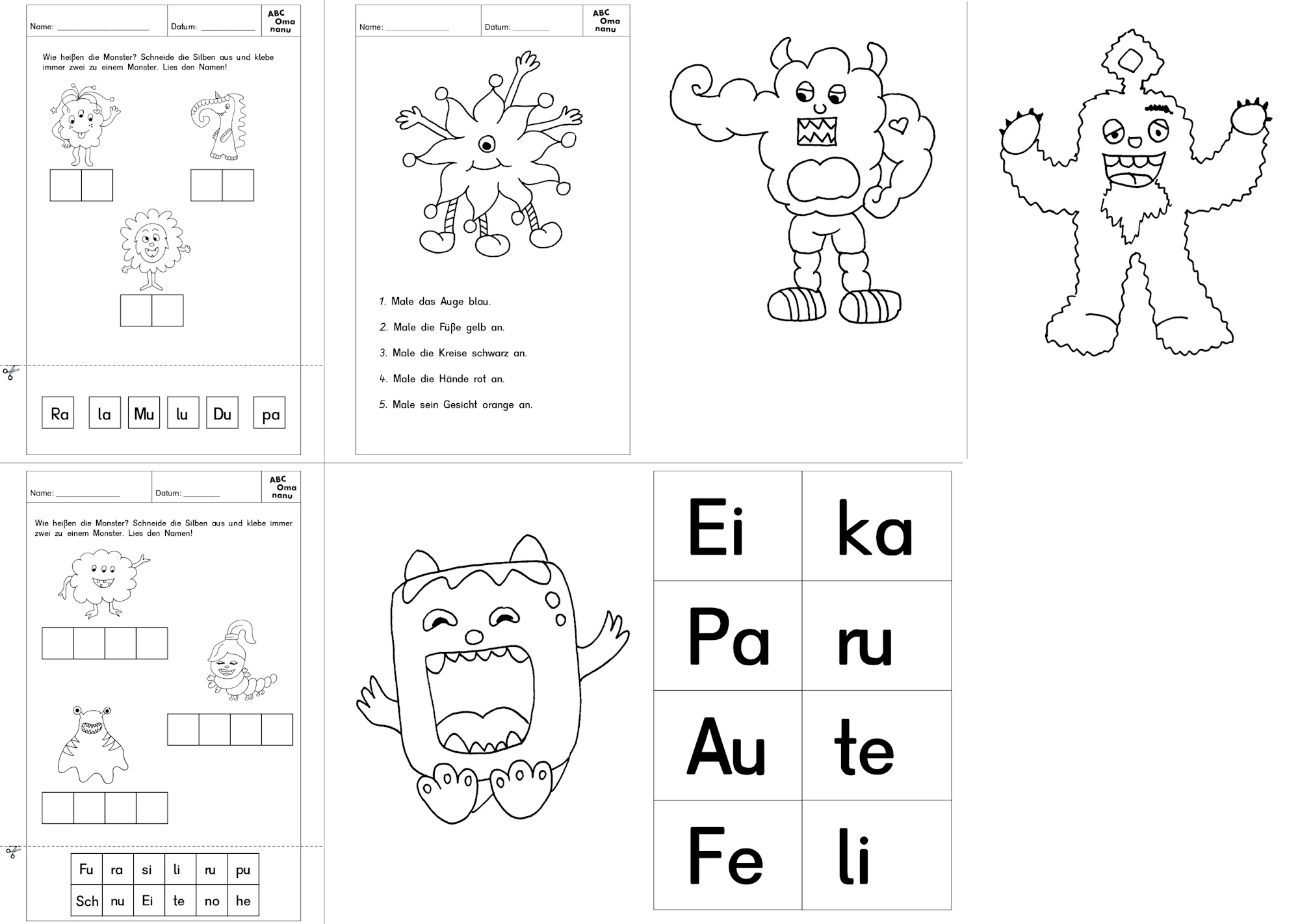 Mithilfe der Monster lesen die Kinder spielerisch. Erstellt mit dem Worksheet Crafter