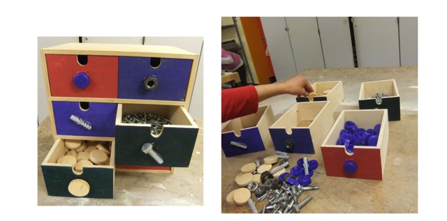 Eine selbst gemachte Sortierkiste: Aufbewahrugsbox kaufen, verschiedene Materialien sammeln und als Vorbereitung für die Werkstatt zum Beispiel im Werkunterricht einsetzen.